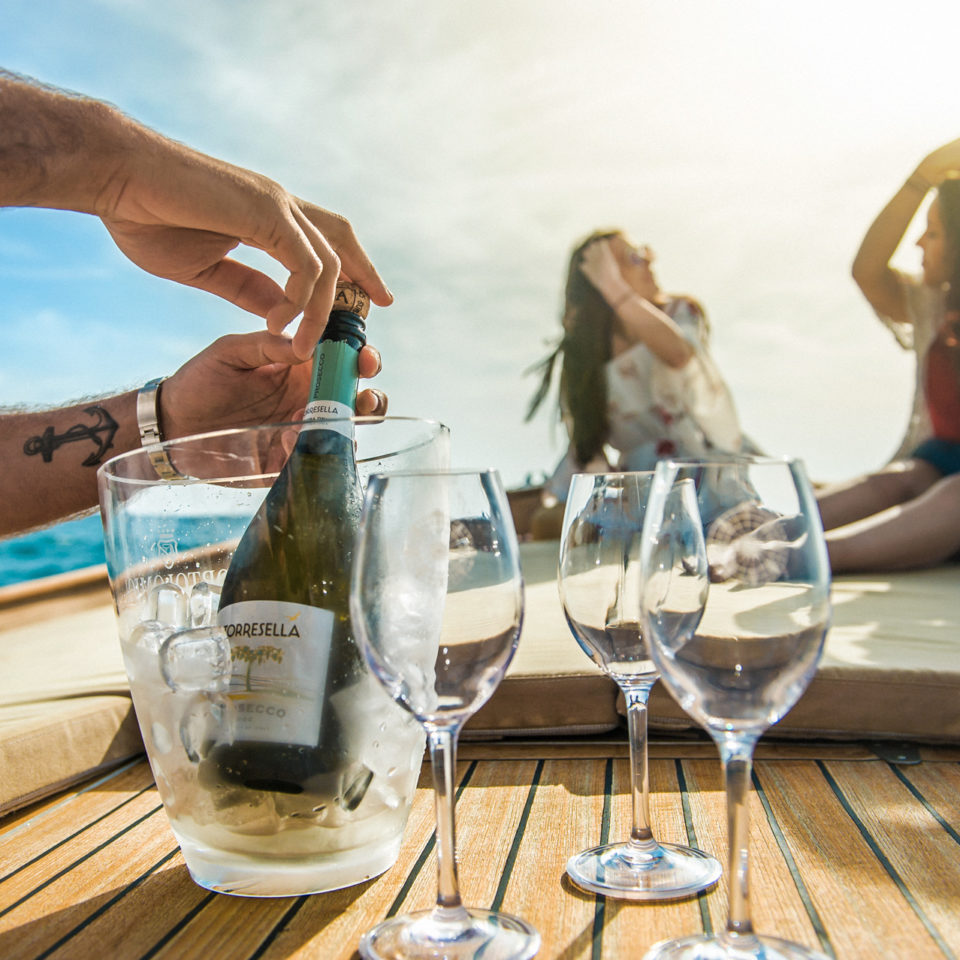Escursione privata, capitano a bordo, attrezzatura da snorkeling, pranzo o aperitivo (in base all'orario di partenza), bevande